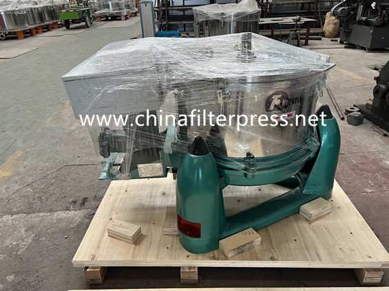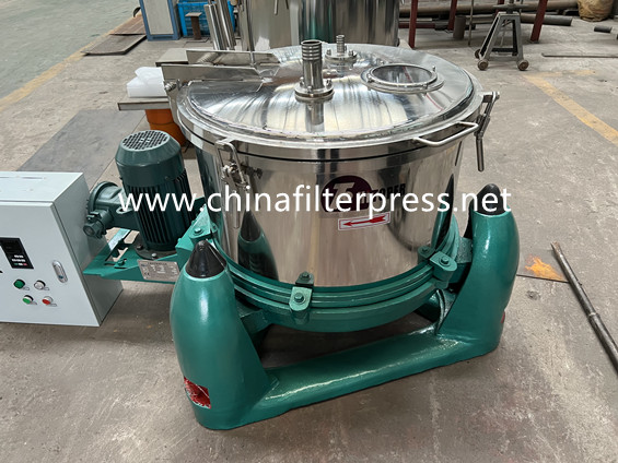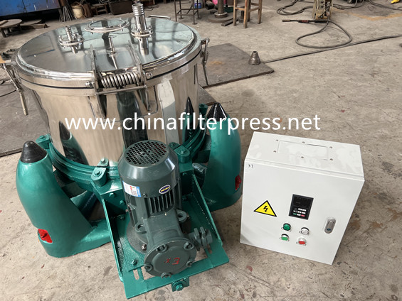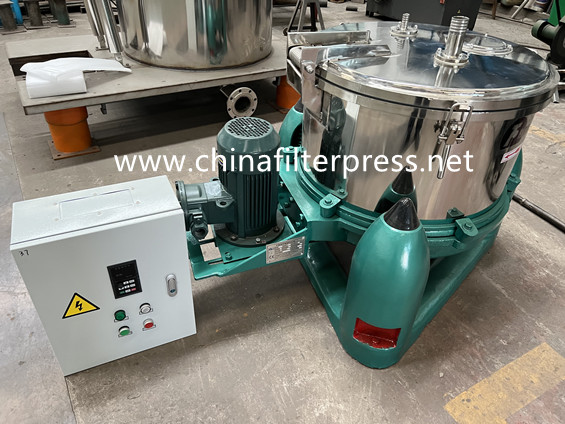 Motor drives drum with high-speed rotary , the material goes into the drum by feed tube on the top , with the centrifugal force, tends to drum wall. Liquid passes through the filter cloth and the drum wall hole and is discharged. The solid is retained in the drum. After the drum stopped and open the lid, and loose the pin of liquid block plate, using hoist device to hang liquid block plate together with filter bag to discharging site. Loose hoist claw and filter cake fall off.