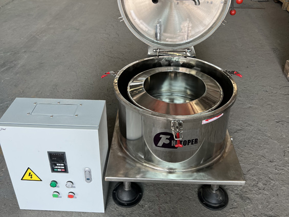 The centrifuge starts loading before starting, and can also be loaded at medium or high speed. The centrifuge drum rotates at high speed. Under the action of the centrifugal field, the particles or liquids with higher density are deposited on the side close to the drum wall (outer layer), and the particles or liquids with lower density (usually liquids) are deposited on the side close to the drum interception port (inner layer). Due to continuous feeding, the liquid phase with lower density in the inner layer overflows from the drum interception port, and is discharged from the liquid outlet pipe through the channel between the outer shell and the liquid collecting tank, or siphoned to the outside of the machine by a skimming device. When the sediment (solid phase) in the drum reaches the specified requirements, stop loading, turn off the power, brake, and unload the filter cake from the drum to complete a working cycle.